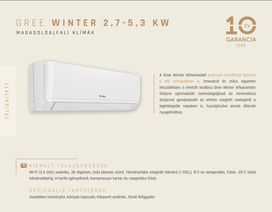 • Kivitel : Oldalfali inverteres klíma