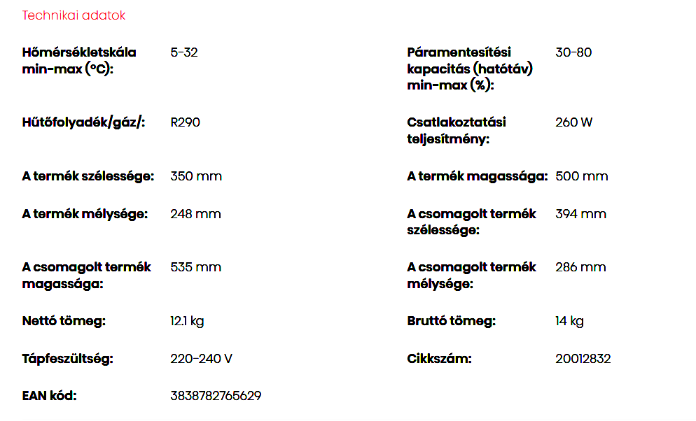 A Hisense D16HW Páramentesítő (16L/nap) fontos tulajdonságai: